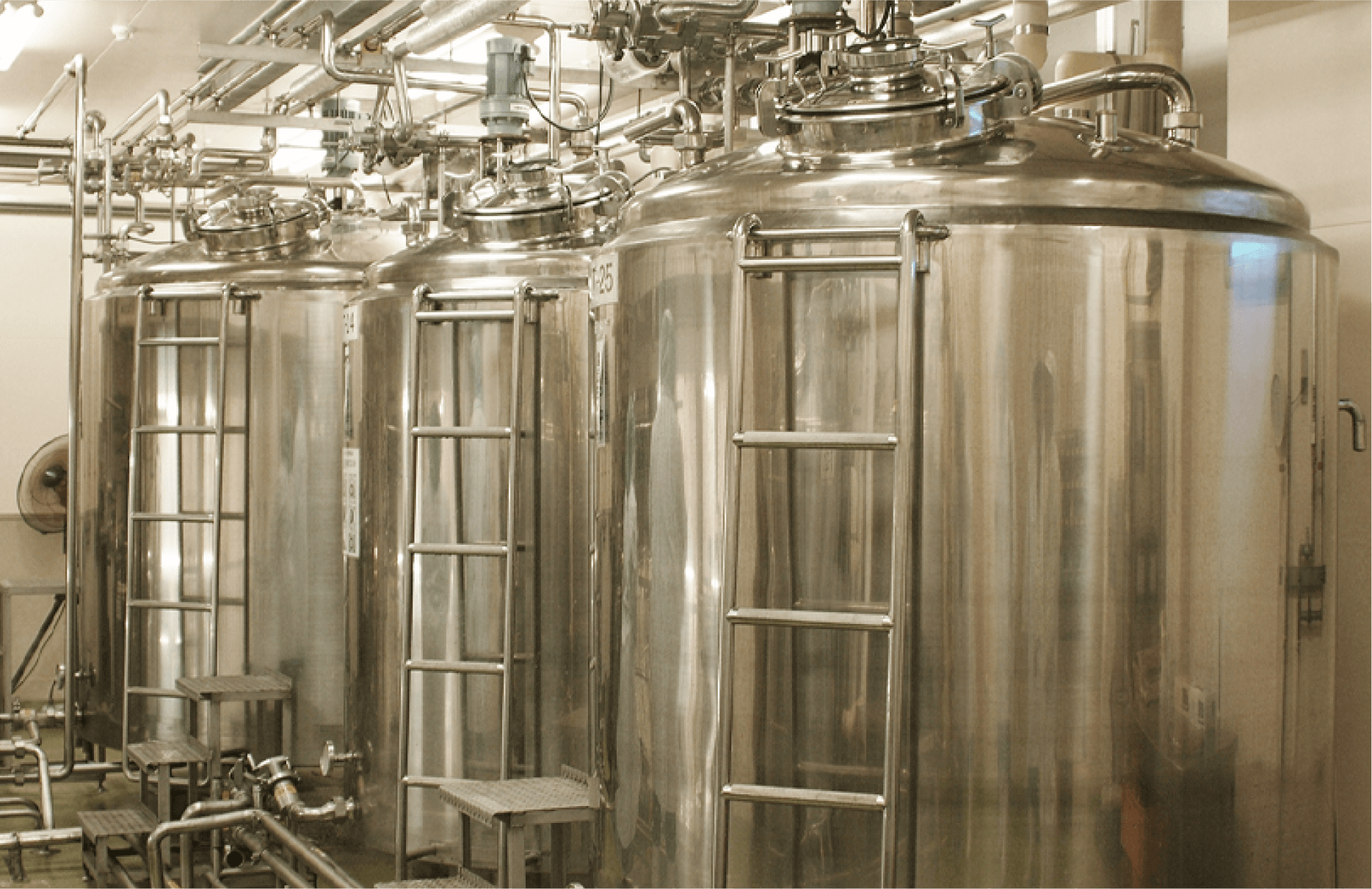 生乳は工場へ受け入れる前に検査を行い、衛生的な乳質の基準を満たした生乳だけが工場内のタンクへと移されます。受け入れ後にもさらに詳細な検査を実施。乳を扱う上での法律を守っています。
