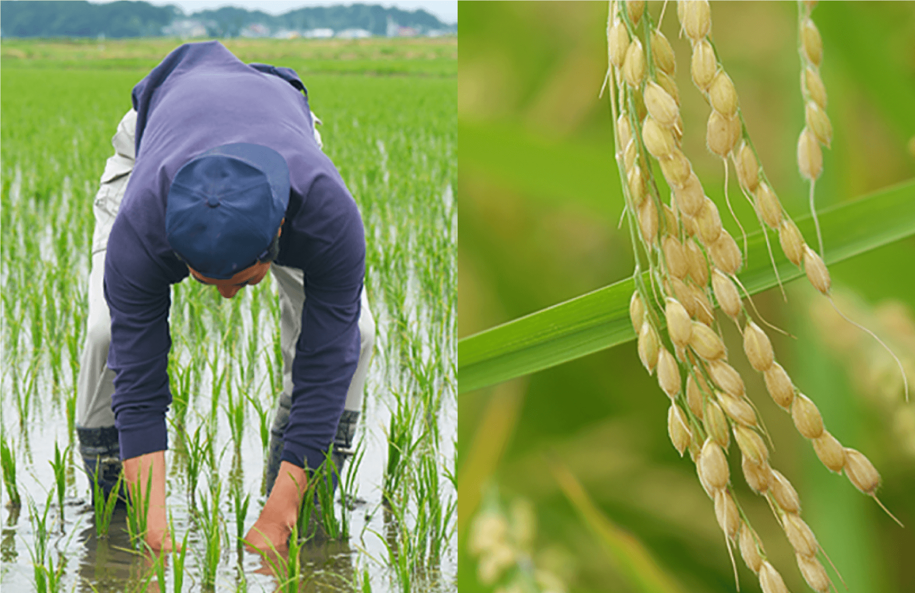 お米の品種は適地適作を基本に、食味だけではなく、生産性や地域の気候に適した品種を選定しています。「ひとめぼれ」「コシヒカリ」「あきたこまち」等を中心に複数の品種を採用しています。