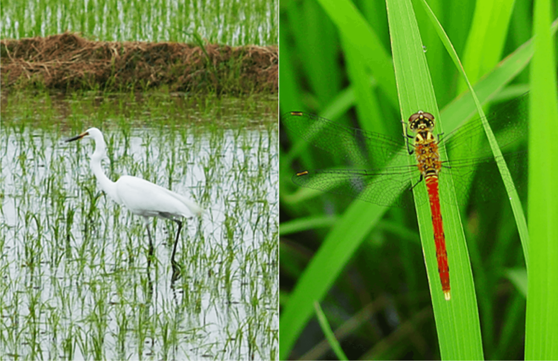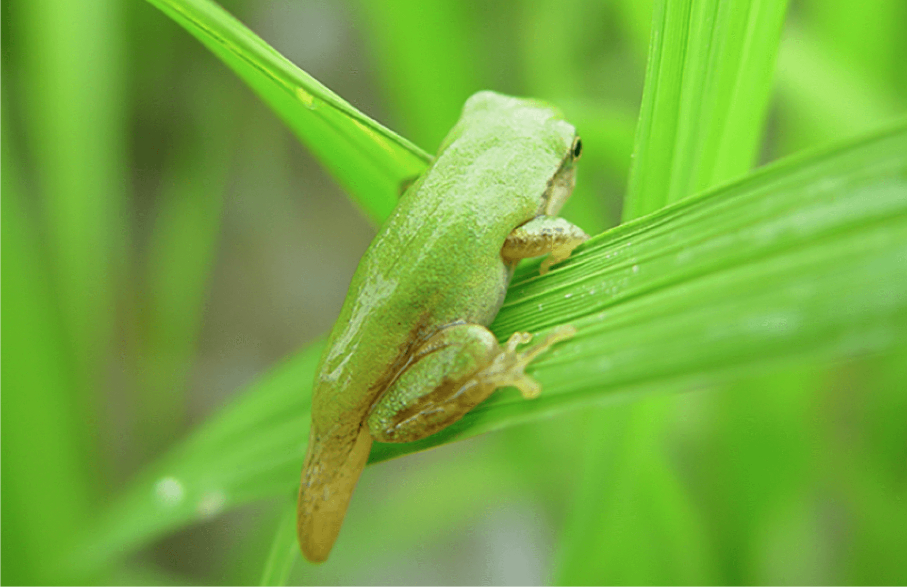 お米の田んぼには、カエルやドジョウをはじめ多くの生きものたちがすんでいます。