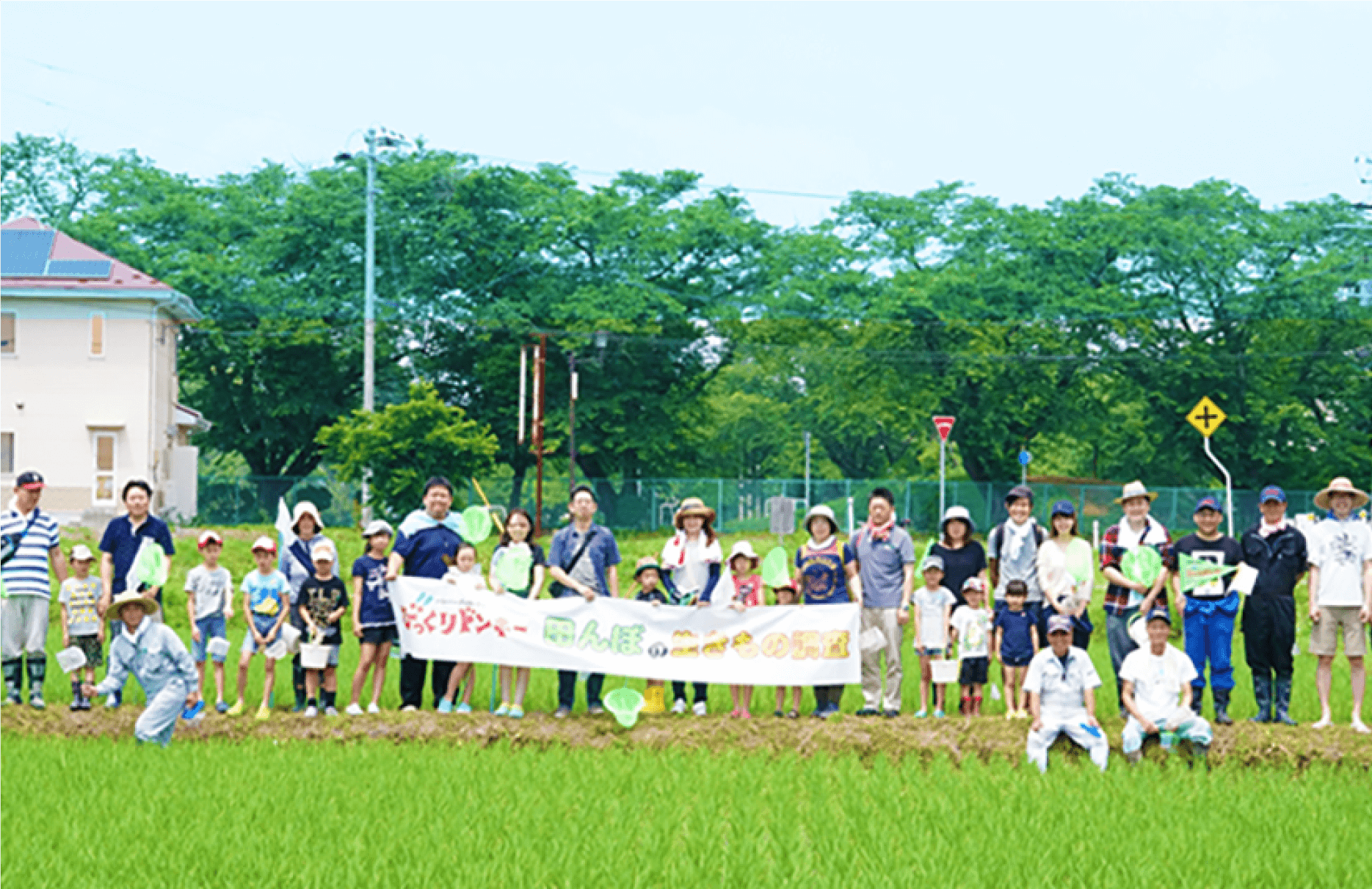 びっくりドンキーでは生産者の皆様と一緒に契約水田の「生きもの調査」を実施し、生物多様性に配慮した持続可能な取り組みを目指しています。