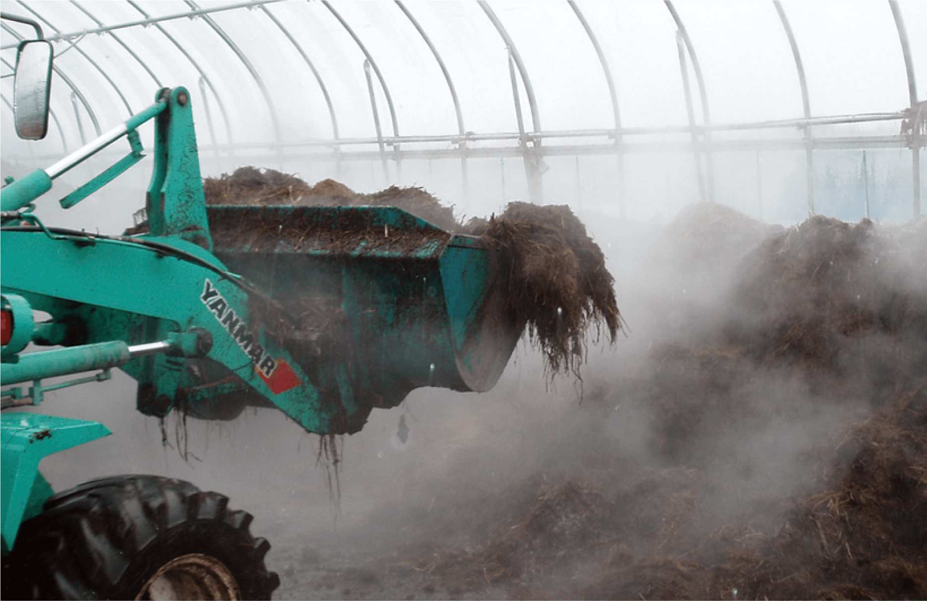 生ごみ資材は全国にある協力農場へ運ばれて堆肥の原料になります。できあがった堆肥は、びっくりドンキーで使われる大根・お米の産地(一部)などに使用されます。